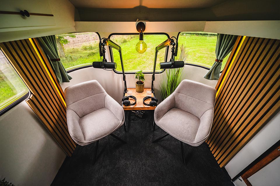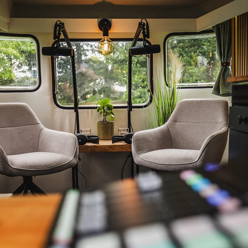 Mijn ervaring is dat dit extra stress oplevert. Daarom werken wij met een aanpak die jouw tijd respecteert en jouw boodschap versterkt. Met De Podcast Caravan kunnen we efficiënt te werk, waardoor jouw podcast in no time op elke gewenste locatie vastgelegd wordt. Ik neem de technische en creatieve kant uit handen en zorg dat er veel content uit gehaald wordt.