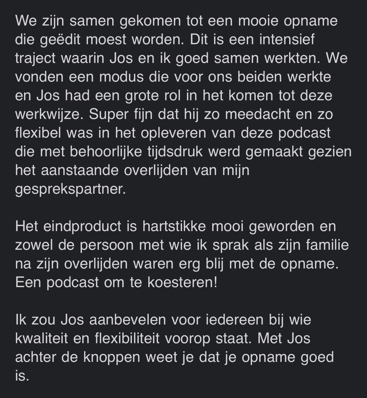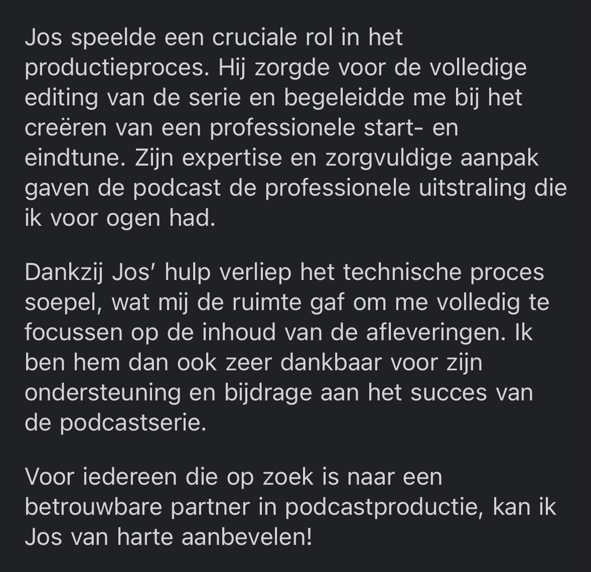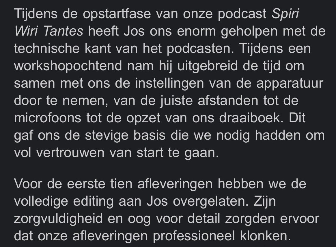 “Erg tevreden met mijn professioneel klinkende podcast! Ik merk dat ik als business coach nog serieuzer genomen word.”